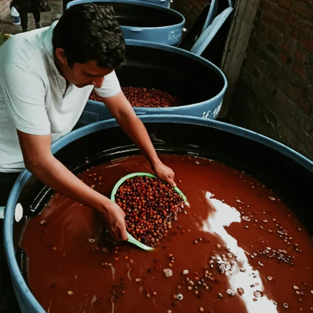 Після остаточного видалення м’якоті боби залишають на 40 годин для ферментації у пластикових ємностях.