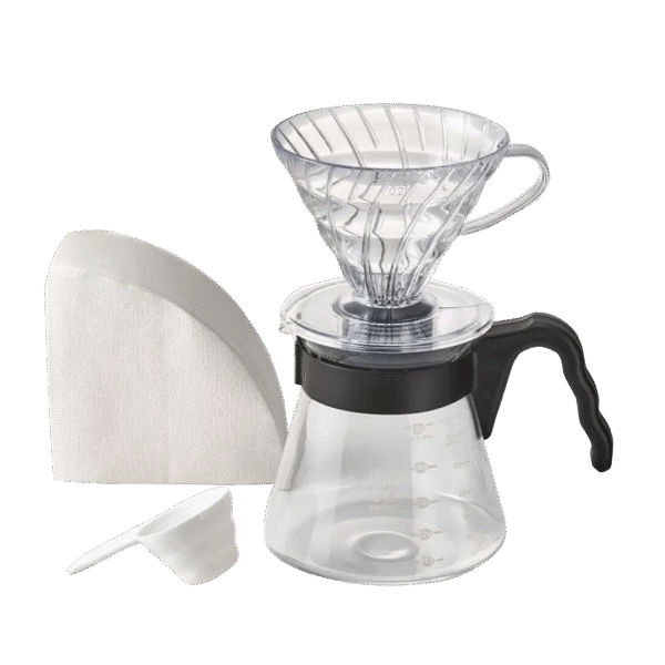 Набір Hario V60 02 для заварювання кави методом пуровер. Чудово підходить в якості подарунку, бо має естетичну коробку та більшість того, що потрібно для заварювання.