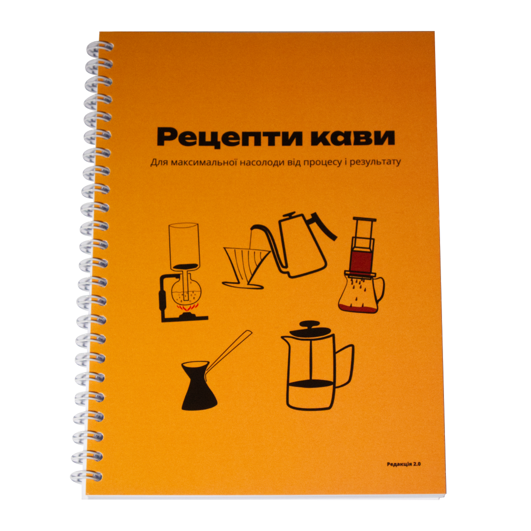 Інтерактивний блокнот – збірник рецептів, який підійде як для початківців, досвідчених поціновувачів кави, так і бариста. Має всі необхідні знання для опанування процесом заварювання. Щоб швидше отримати гарний результат, та насолоджуватись процесом заварювання і споживання.