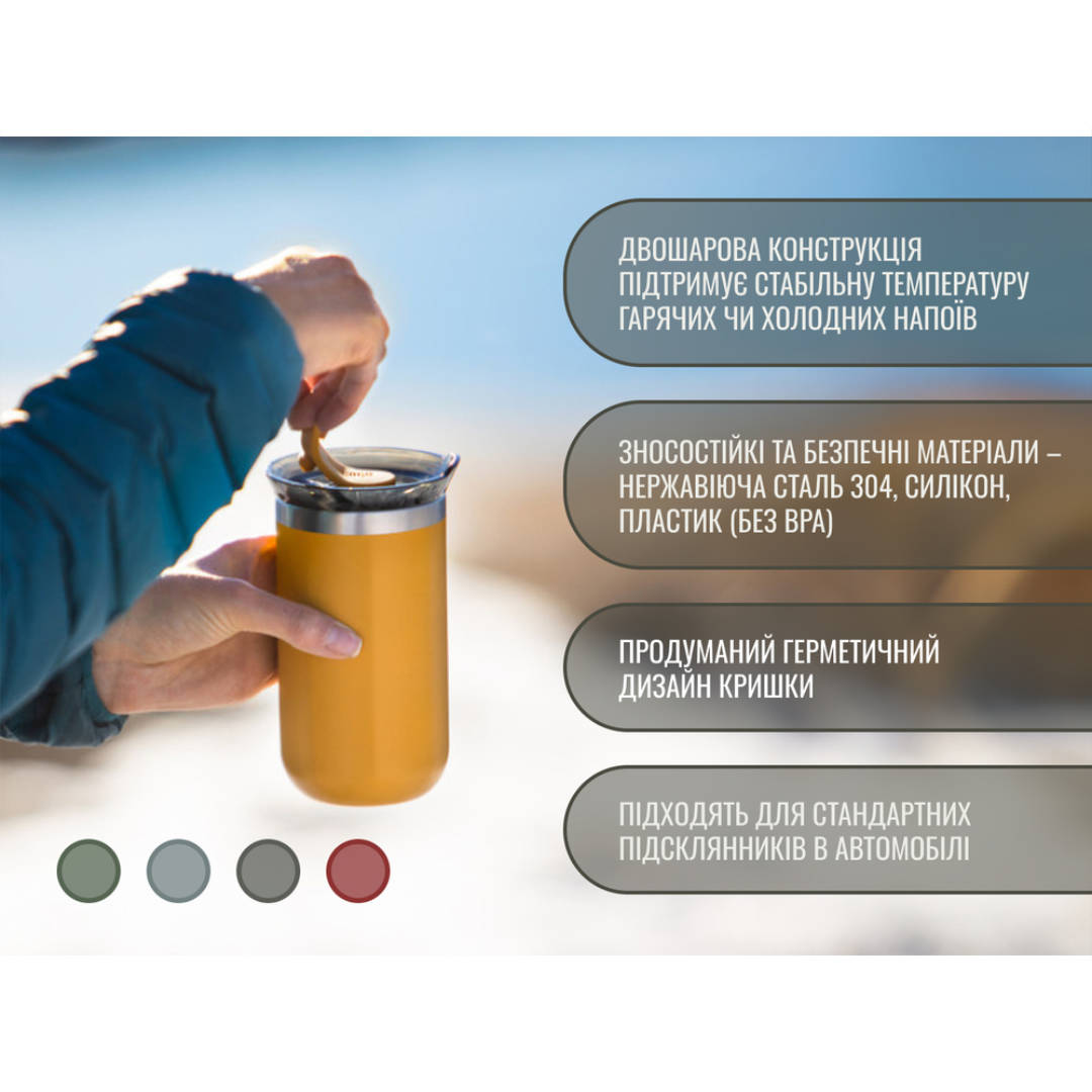 - Об’єм 435 мл. Збільшений обʼєм дозволяє насолодитися напоєм, зігрітися або вгамувати спрагу. Водночас модель важить лише 325 г, не обтяжуючи сумку або рюкзак.